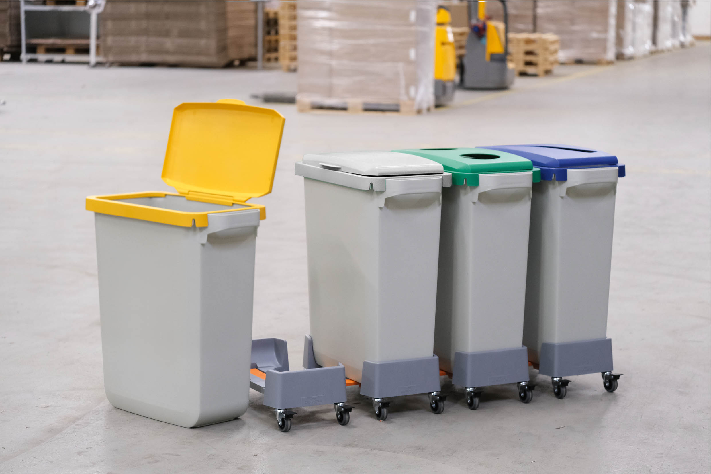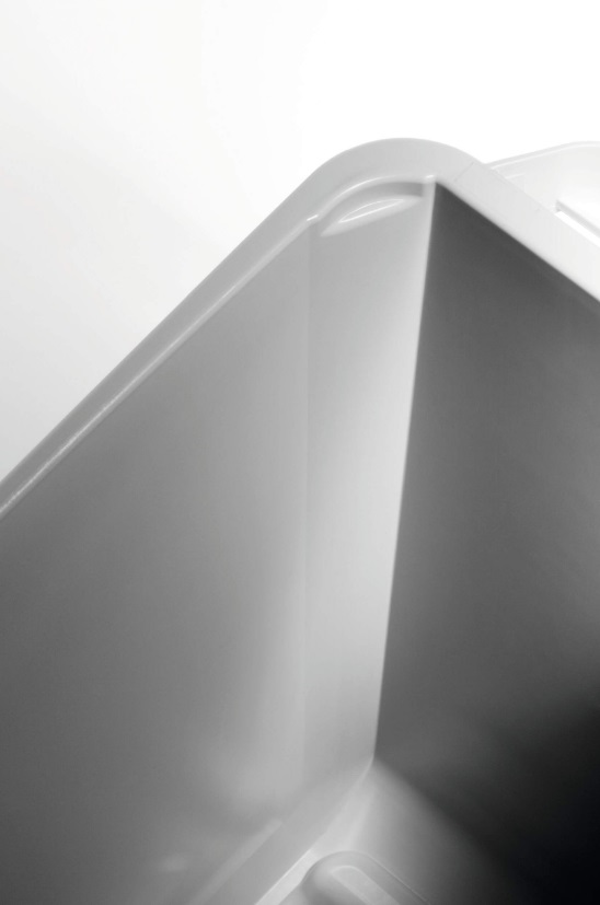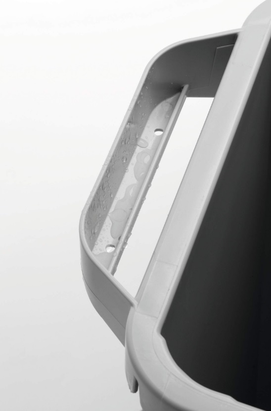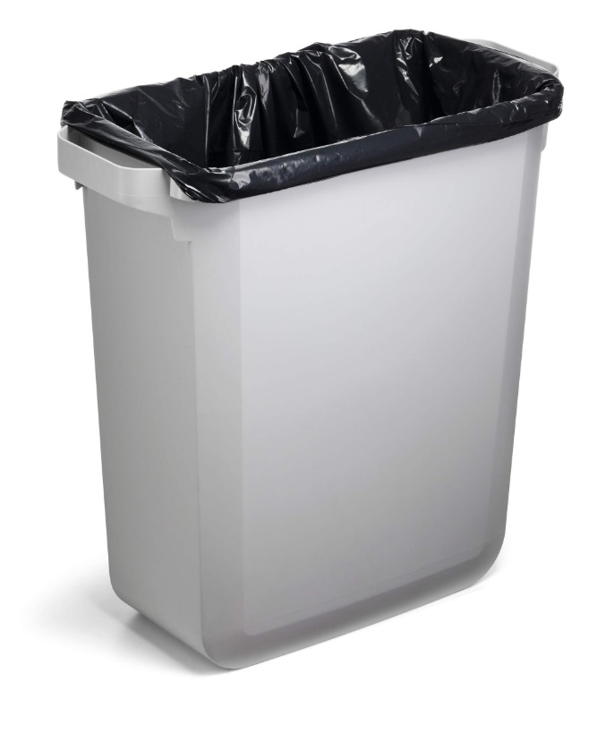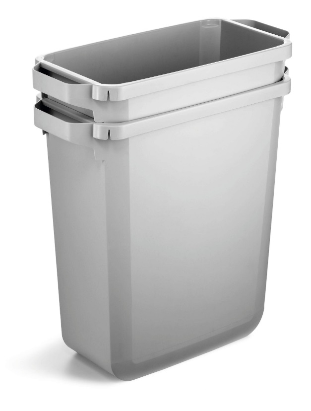 Avfallstunna, stor papperskorg, återvinningssortering, förvaring av foder, korg för upphittade kläder, mjölbinge - det finns många användningsområden för DURABIN 60 tunnan med greppvänliga handtag med dräneringshål. Rymmer 60 liter. Livsmedelsgodkänd. Fasade kanter förhindrar vakumeffekt vid stapling. Sopsäcken sitter säkert på plats via skåror i hörnen. Undersida med greppurtag förenklar lyft och tömning. Mått (HxBxD): 600 x 590 (inkl handtag) x 280 mm. Tillbehör: Lock artikelnummer 1800497 i olika färger, gångjärnslock artikelnummer 1800500 i olika färger, vagn för en tunna 1801666010, vagn för två tunnor 1801667010, väggbeslag 1801662023.